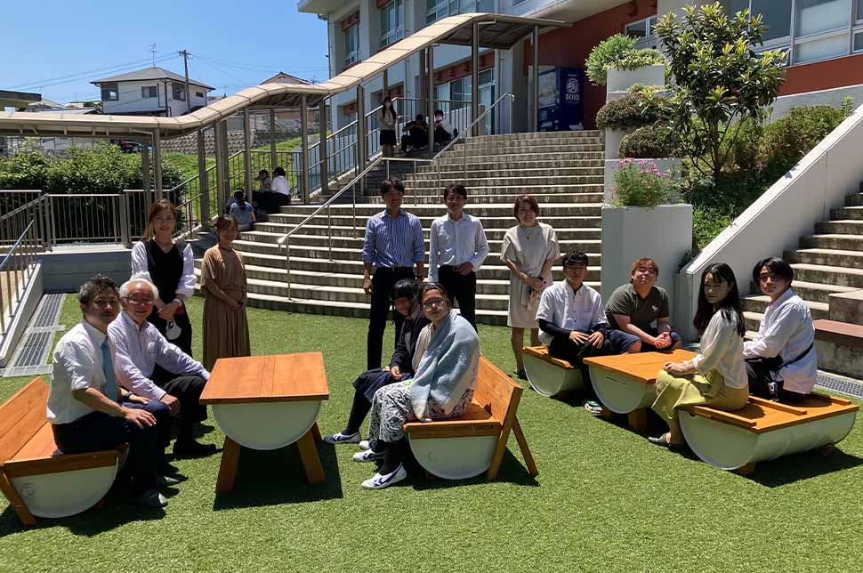 - 立花高等学校への訪問 コミュニティスペースへのオリジナルデザインテーブルの贈呈